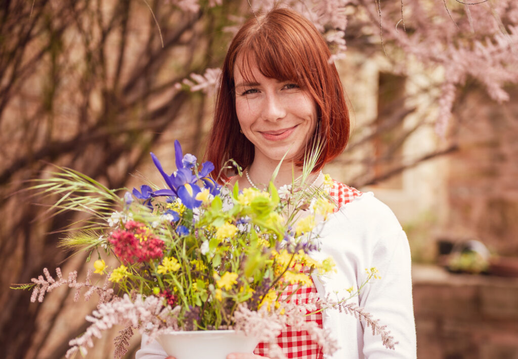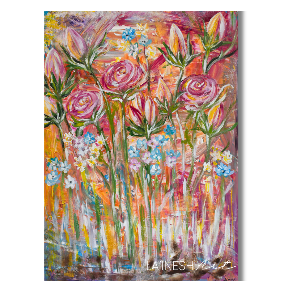 Ganz intuitiv und von Gott geführt entstehen die verspielten, bunten Blumenmeere.